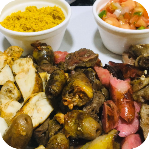 1 Espeto, Farofa, Vinagrete e Molho